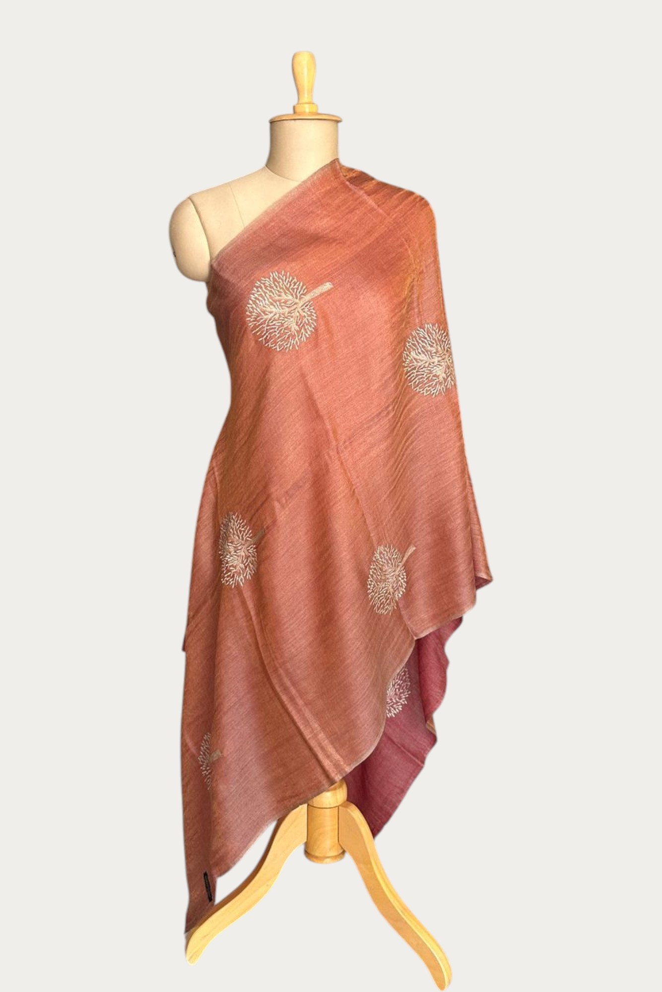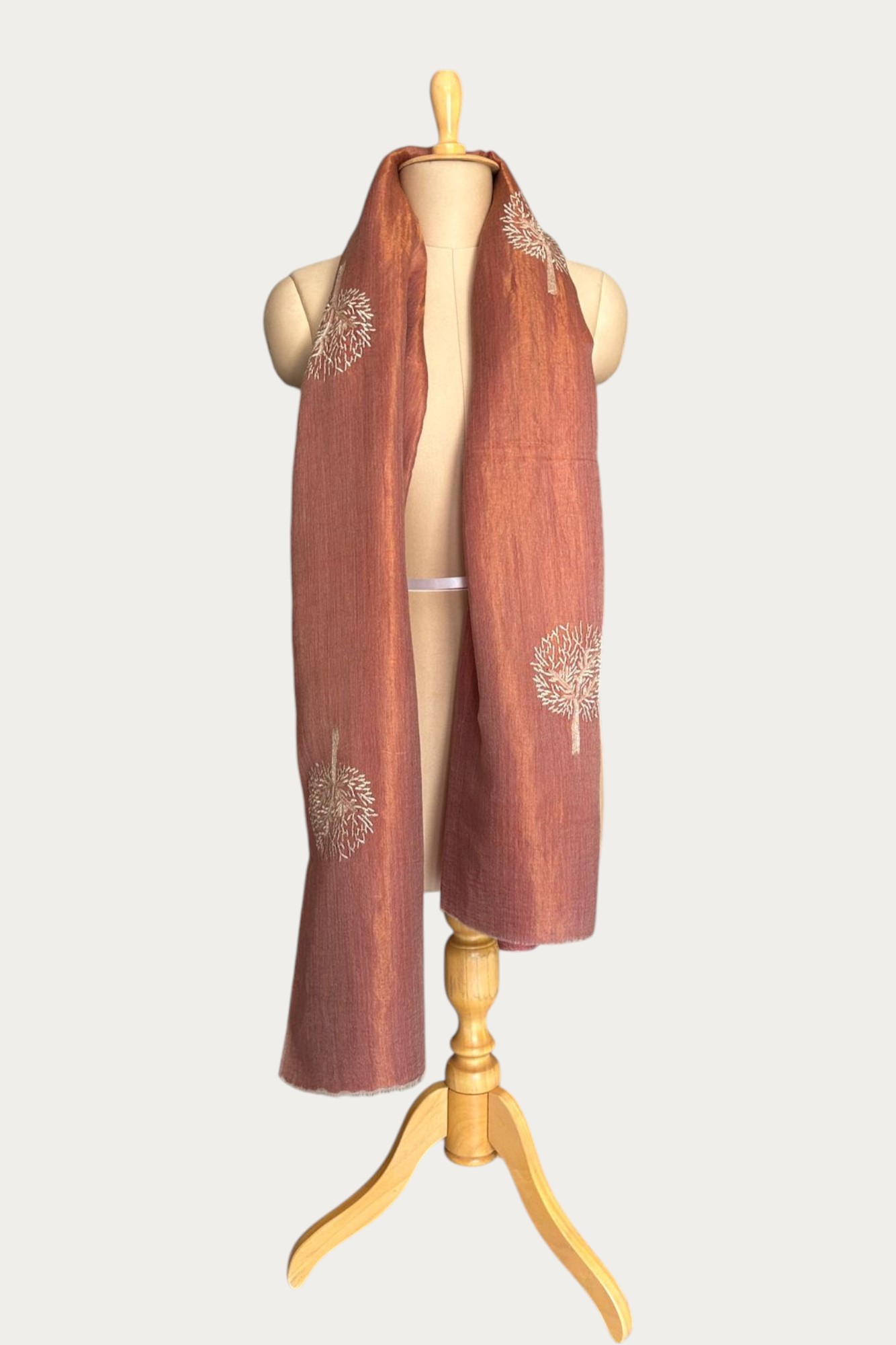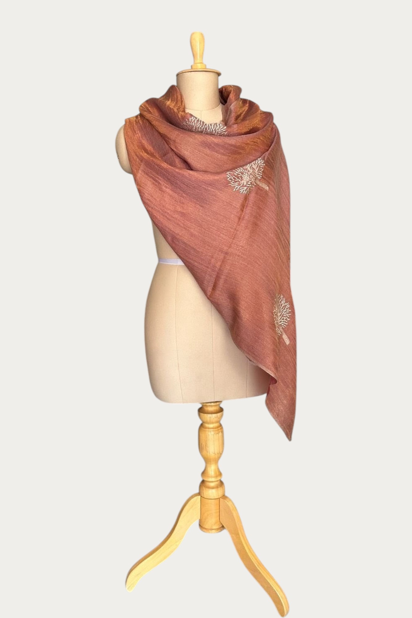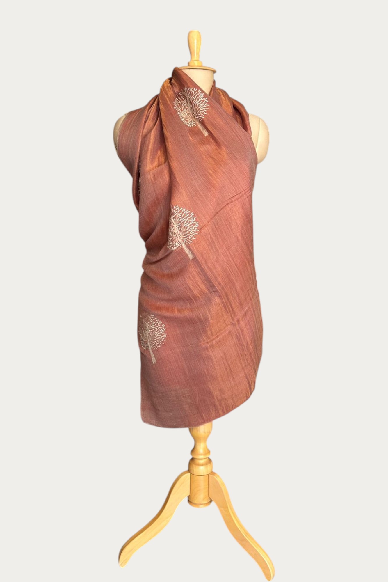 A Shahposh Fine Silk touch stole with subtle tree embroidery