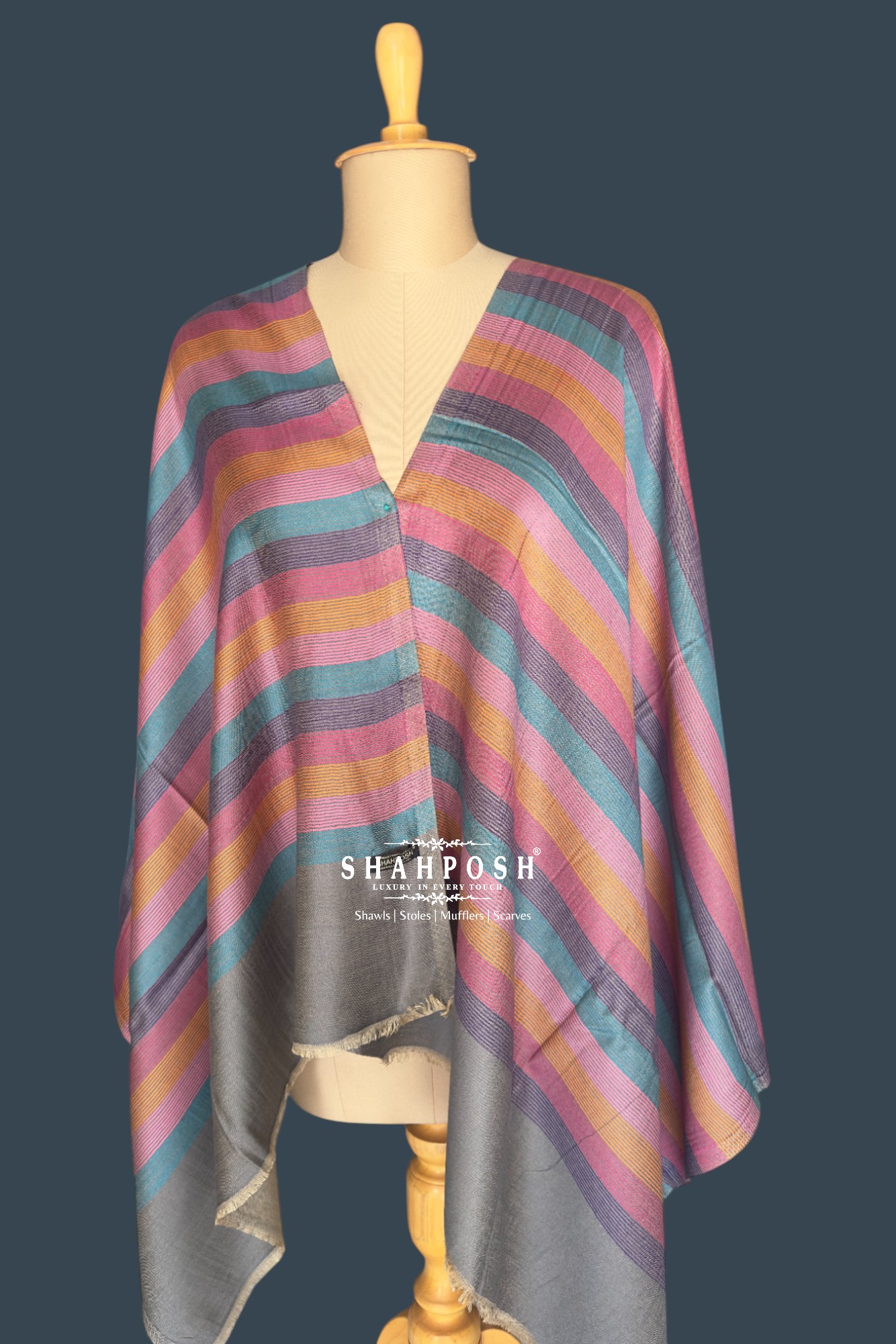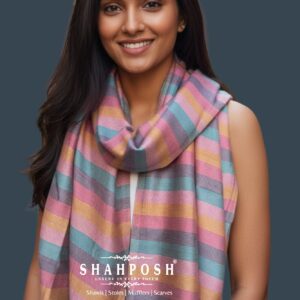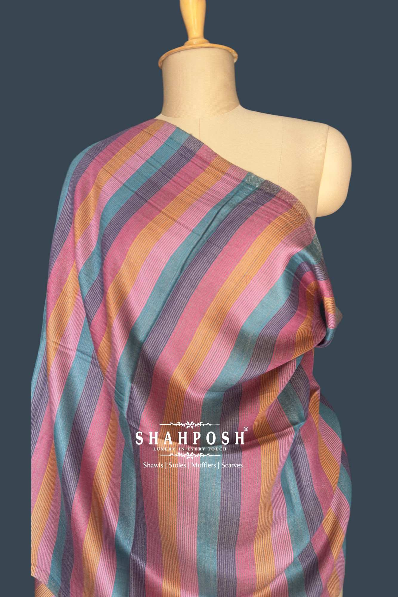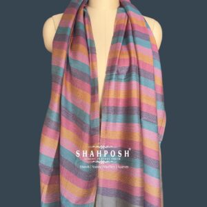 A Shahposh Fine Wool Multicoloured Striped patterned stole sophisticated striped pattern in a striking multicolor , creating an elegant and artistic feel. The intricate details of the design make it a true statement piece.