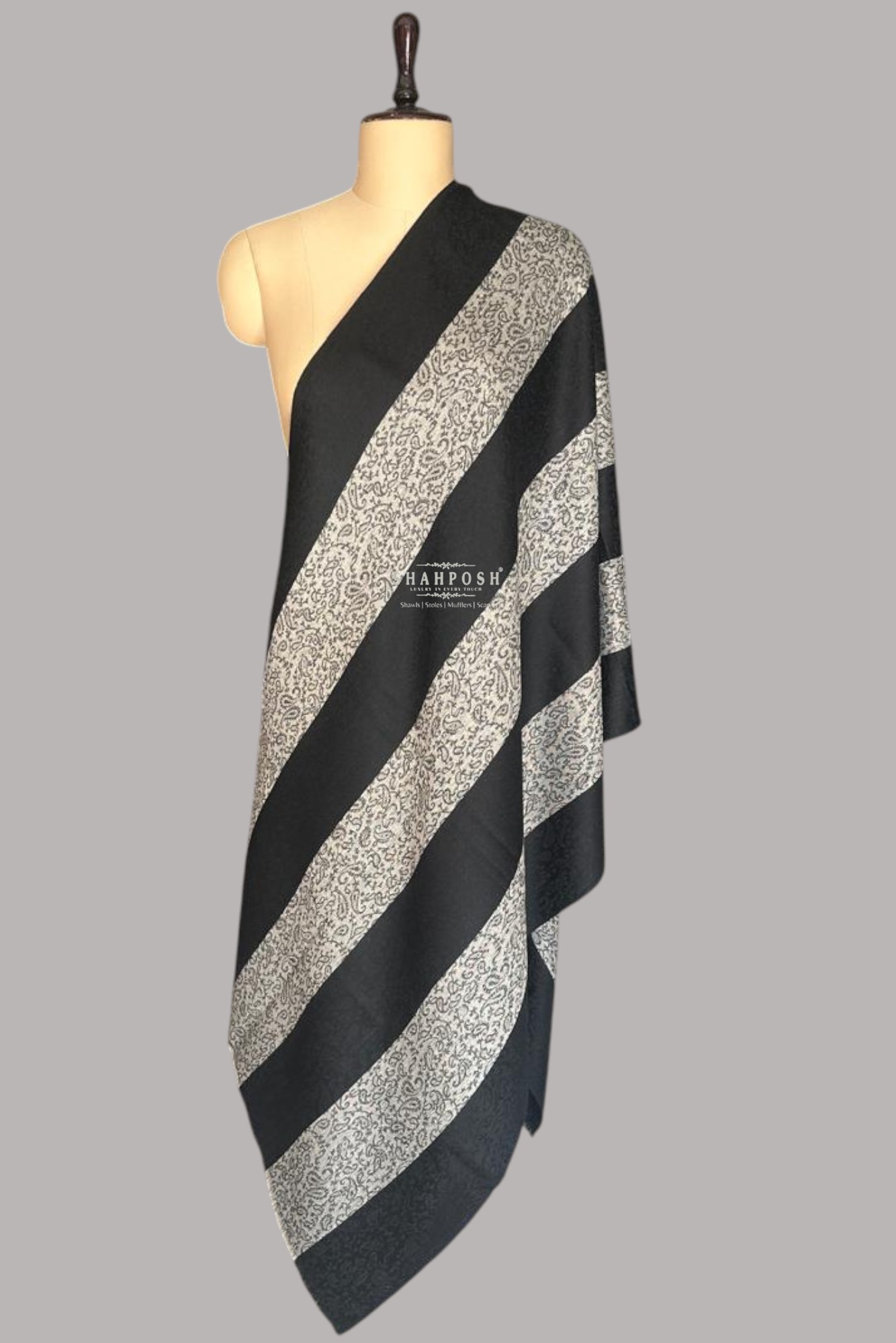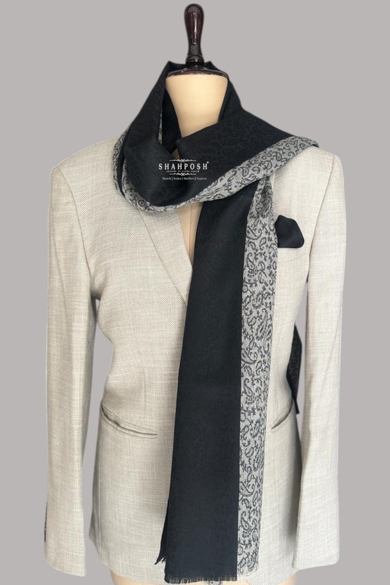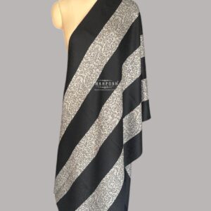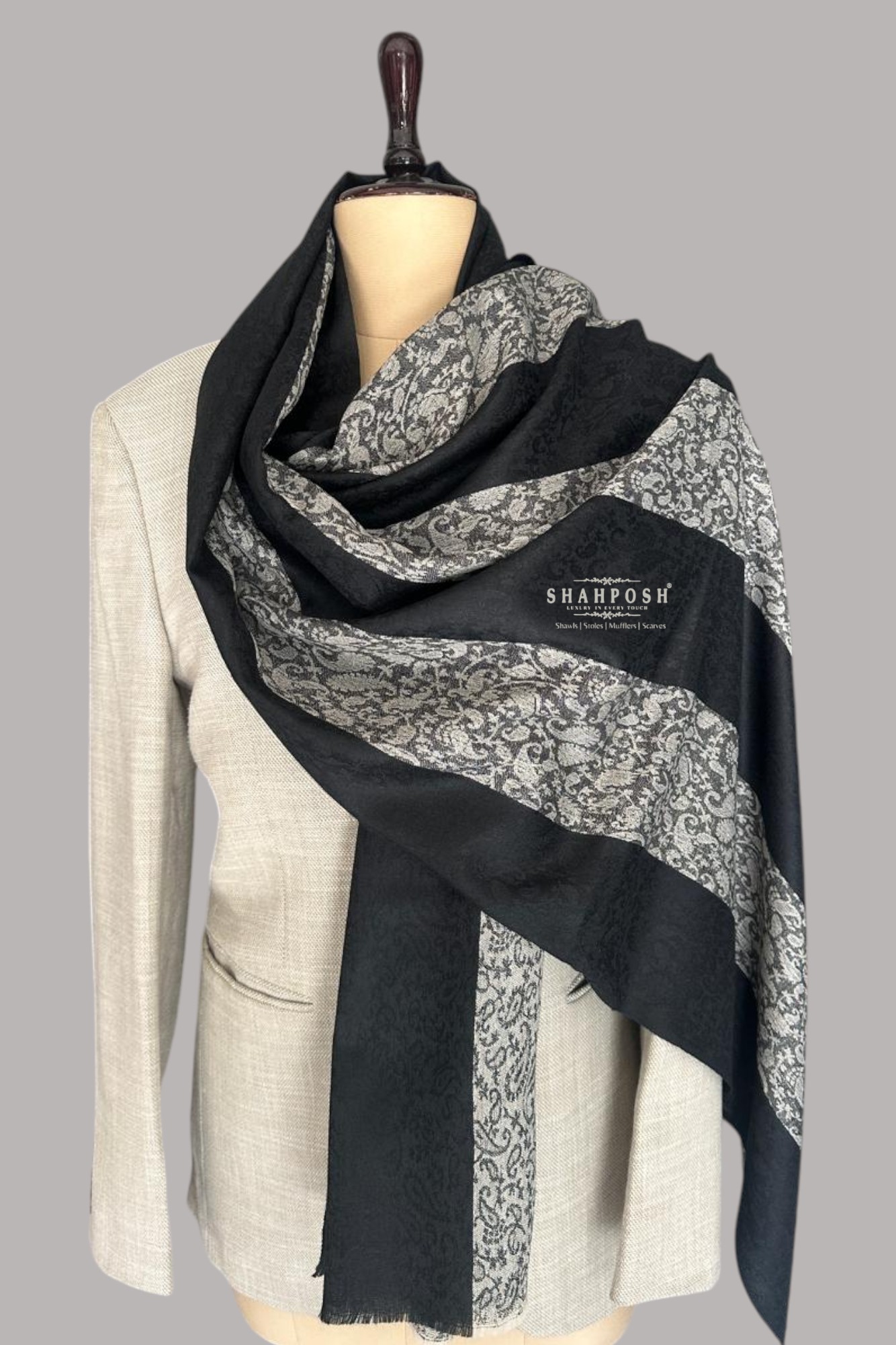 A Shahposh Stole Incomparable Tapestry of Shadow and Sheen Where Obsidian Majesty Meets Whispers of Silvered Paisley.