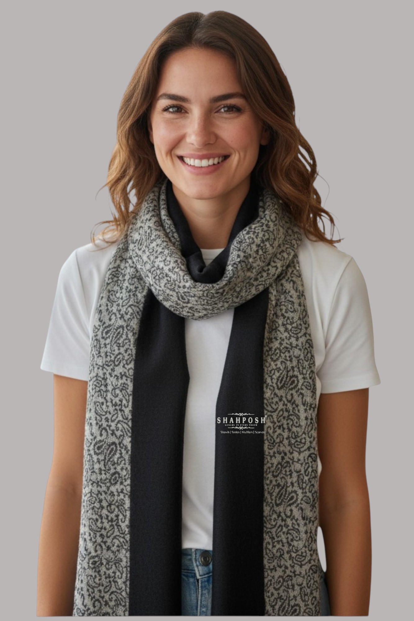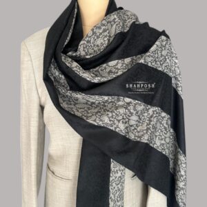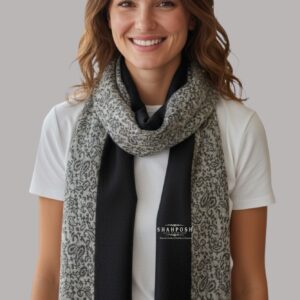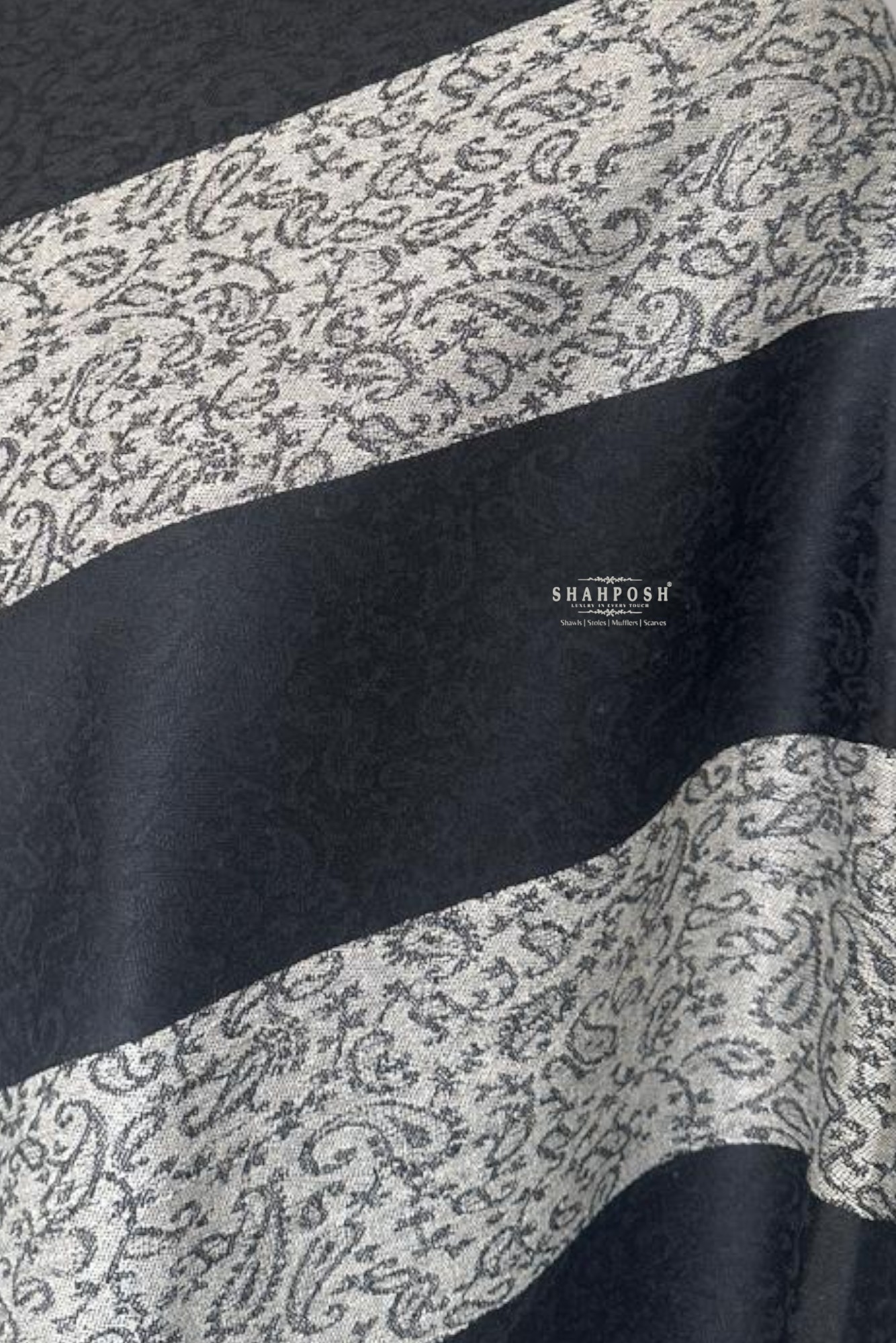 A Shahposh Stole Incomparable Tapestry of Shadow and Sheen Where Obsidian Majesty Meets Whispers of Silvered Paisley.