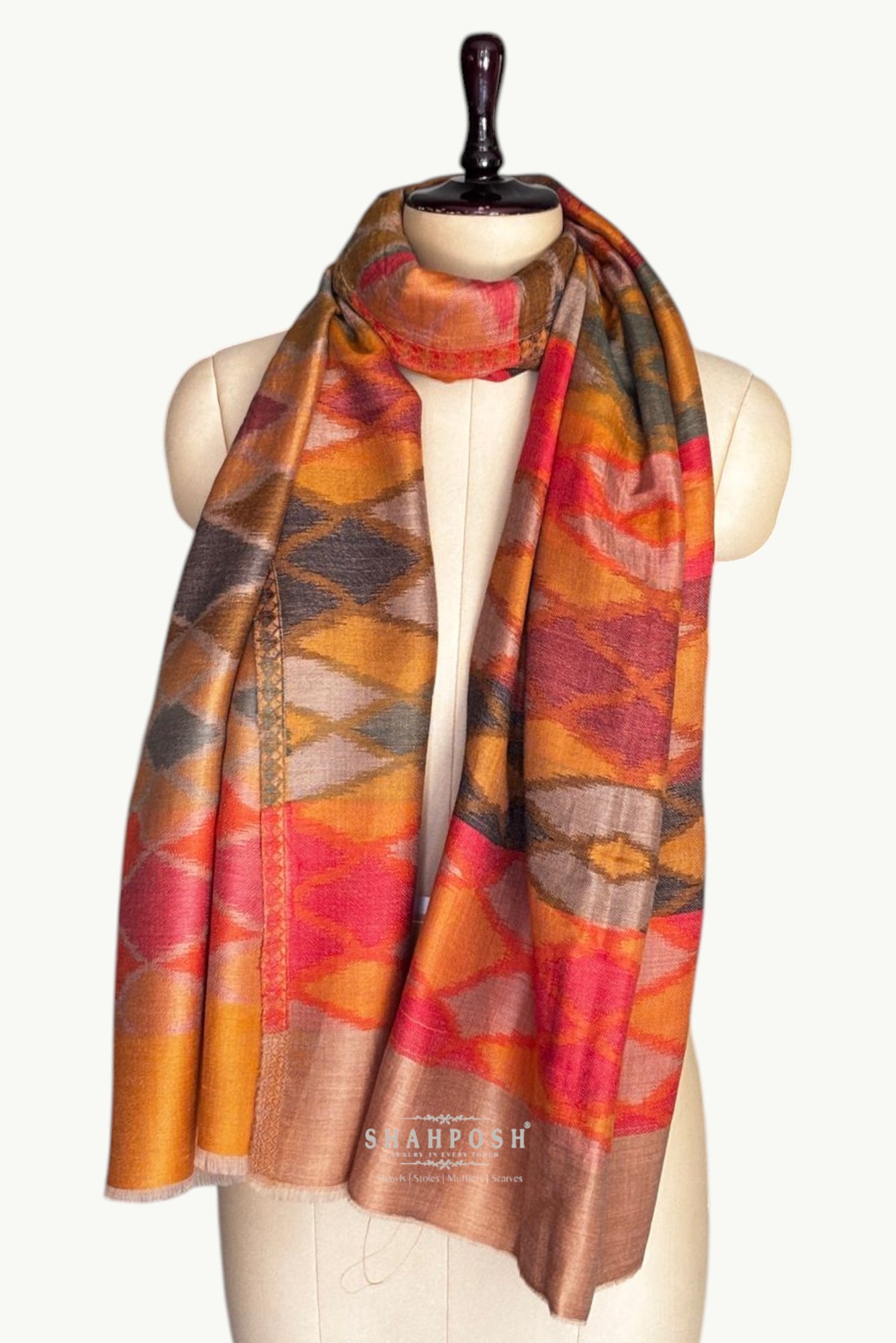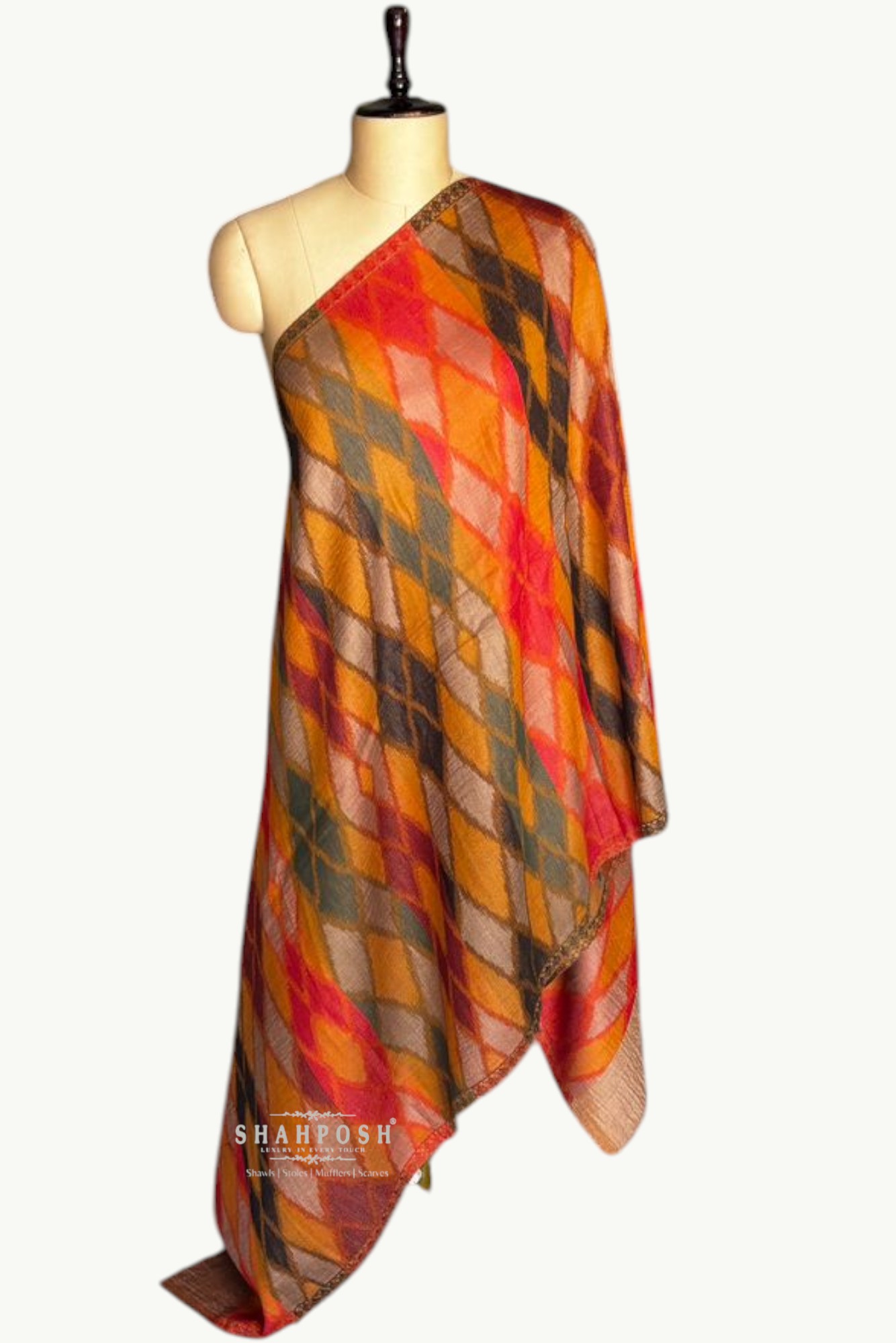 A Shahposh opulent warmth of exquisitely patterned autumn shawl, a statement of refined elegance. Each vibrant hue and intricate weave speaks to a legacy of timeless sophistication, perfect for the discerning individual.